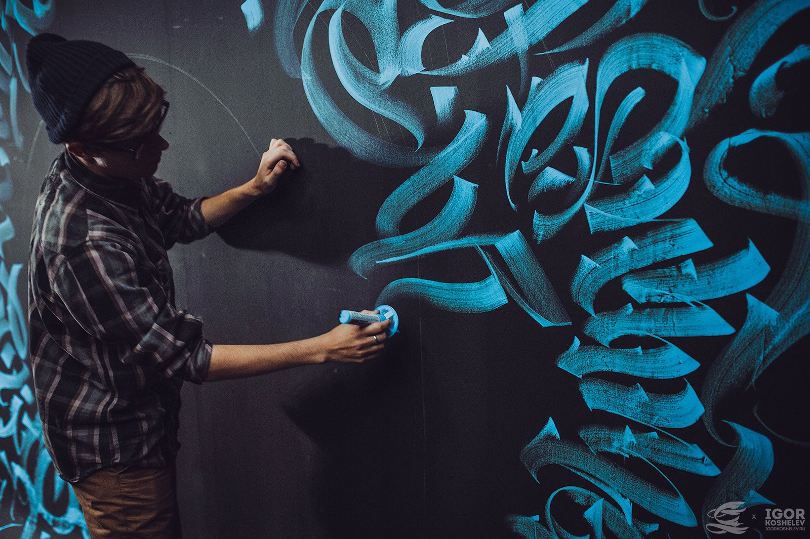 Used tools: 60mm wide Molotow 711EM Empty Marker & Molotow Tiffany Blue Acrylic Ink for the Wall.
