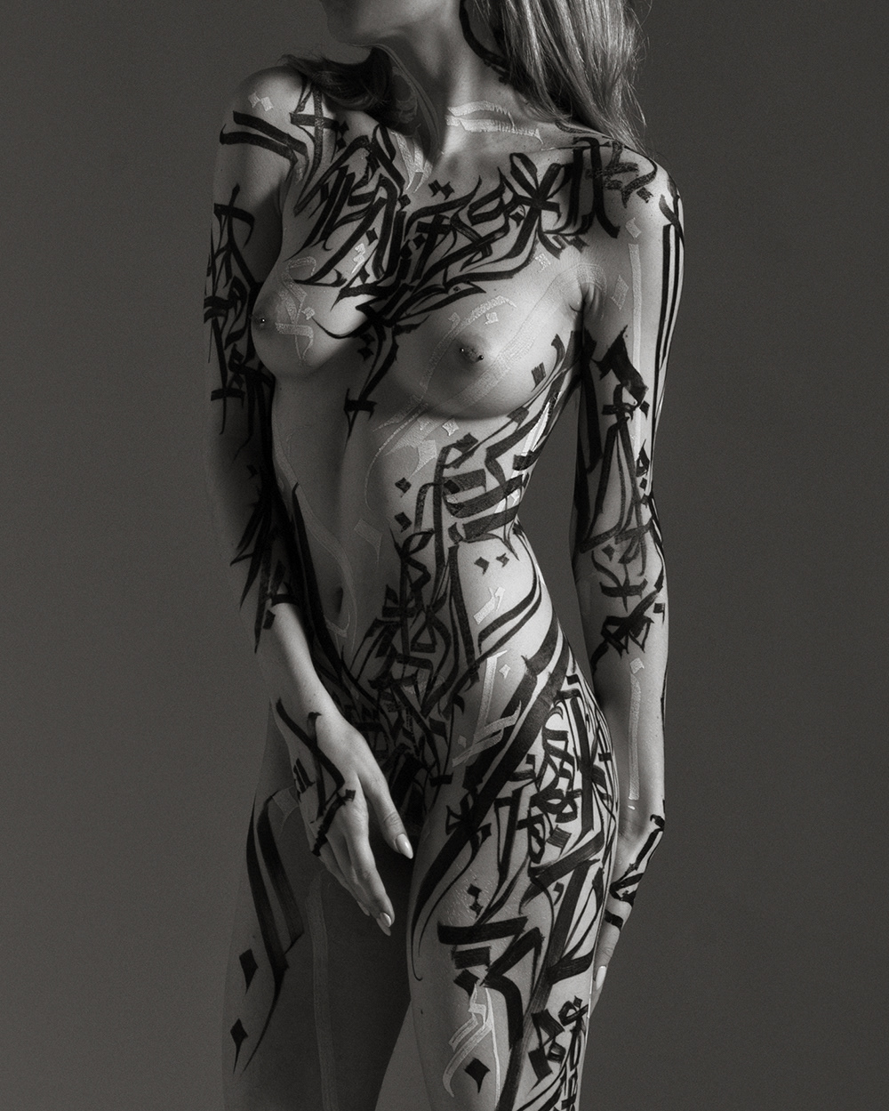 Ink and skin. Black and white. Art and Photo. Harmony of #calligrafuturism .