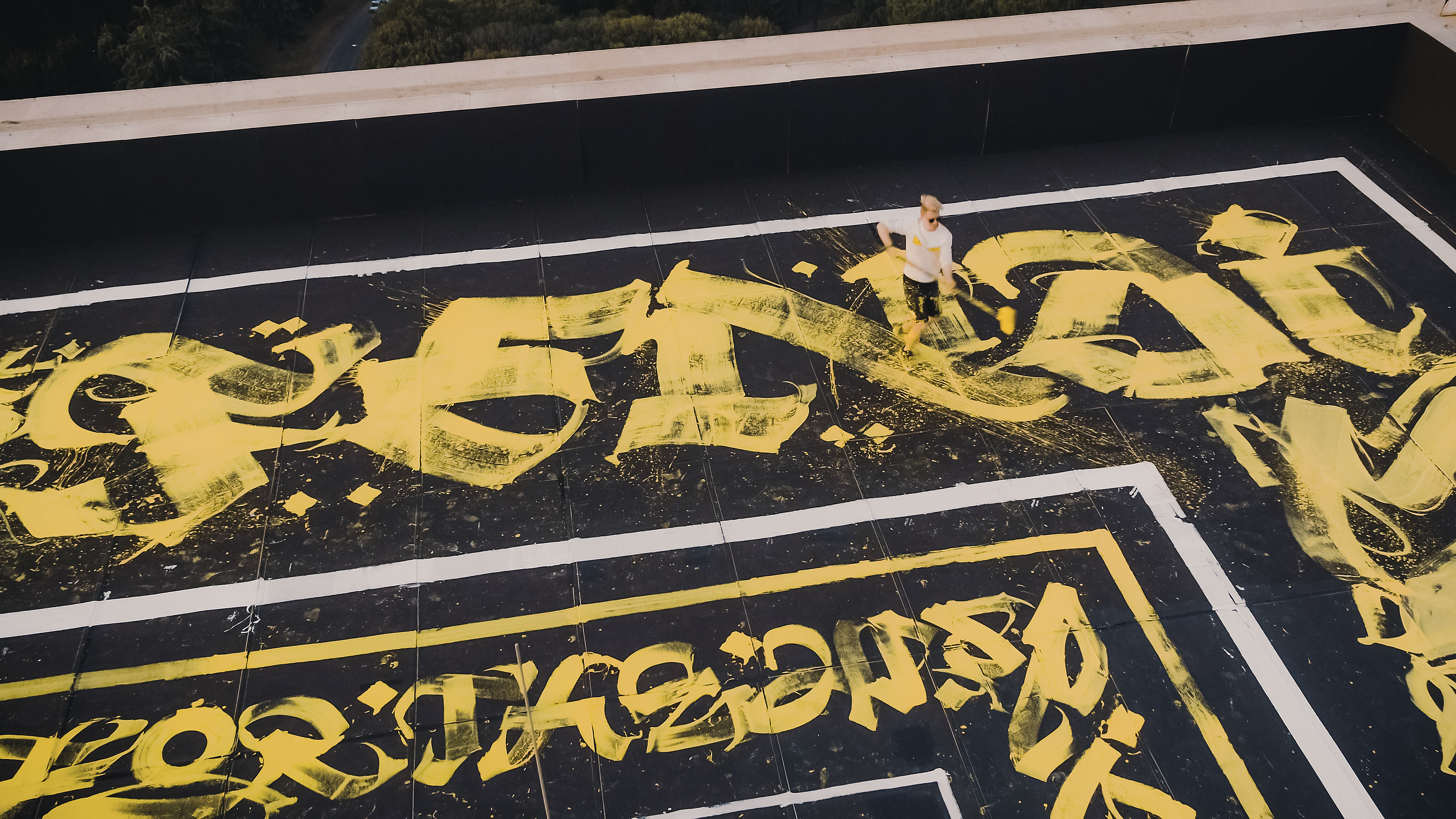 Huge calligraffiti artwork created on the famous rooftop of the FENDI headquarter in ROME.